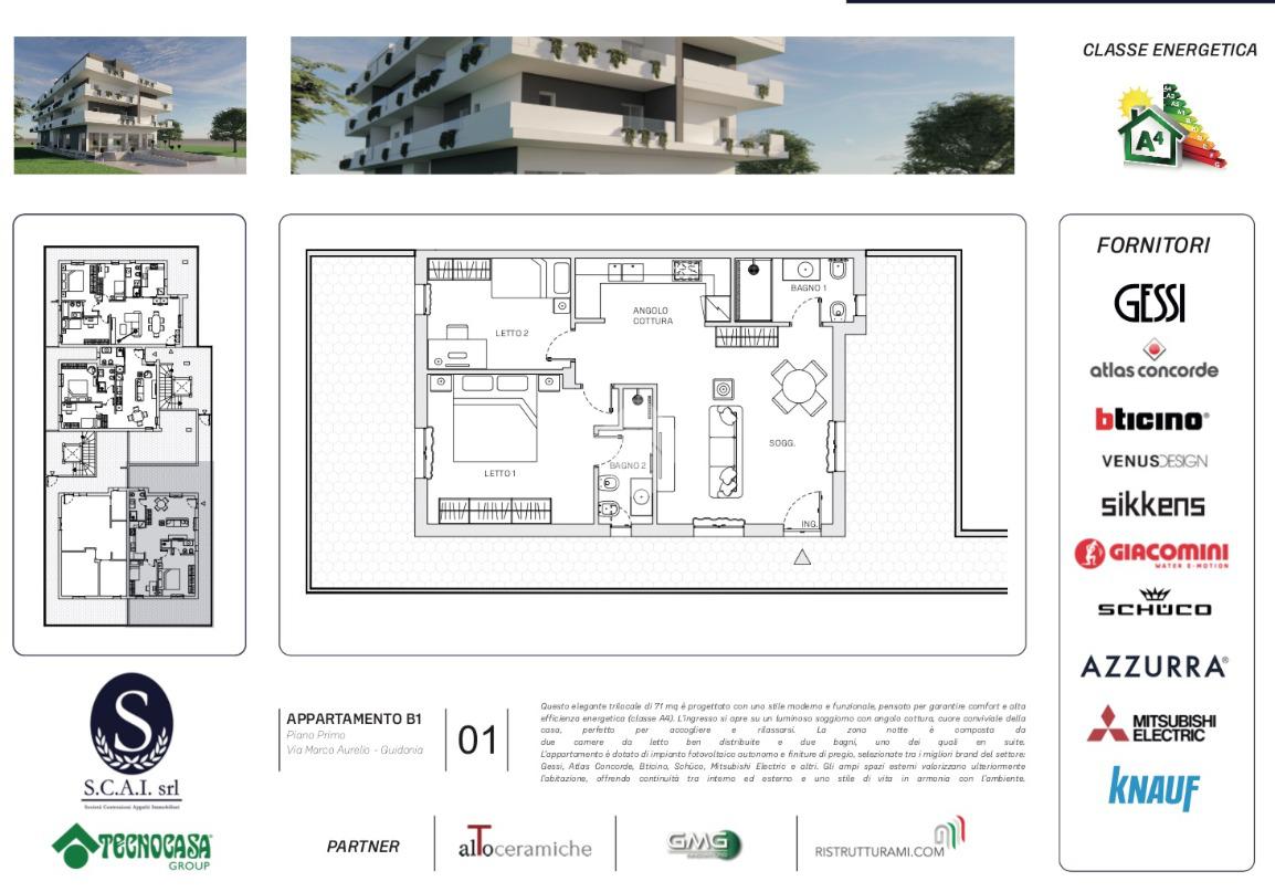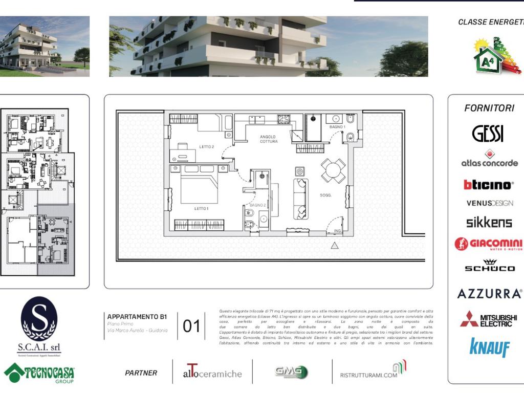 Scopri il tuo nuovo rifugio nel cuore di Guidonia! Questo appartamento di 72 mq interni e 63 mq di terrazzi, è composto da : salone con angolo cottura, 2 camere da letto, doppi servizi e ampio terrazzo, situato al primo piano di un elegante edificio con ascensore, è parte di un progetto architettonico all'avanguardia, con consegna prevista per Dicembre 2026.